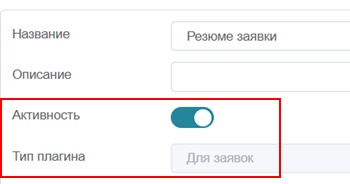 2) Активируйте плагин и убедитесь что тип плагина указан "для заявок":