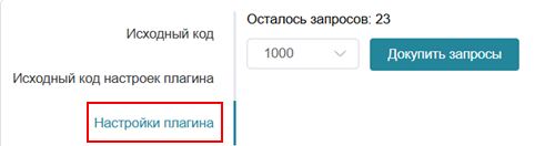 4) Во вкладке "Настройки плагина" можно увидеть кол-во оставшихся запросов и докупить их.
