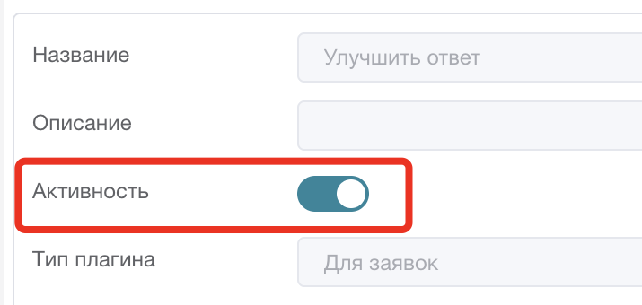 После установки плагина активируйте его (тумблер "Активность"), во вкладке "Доступ к плагину" укажите департаменты, в заявках которых будет работать плагин, и группы сотрудников, которые смогут пользоваться инструментом: