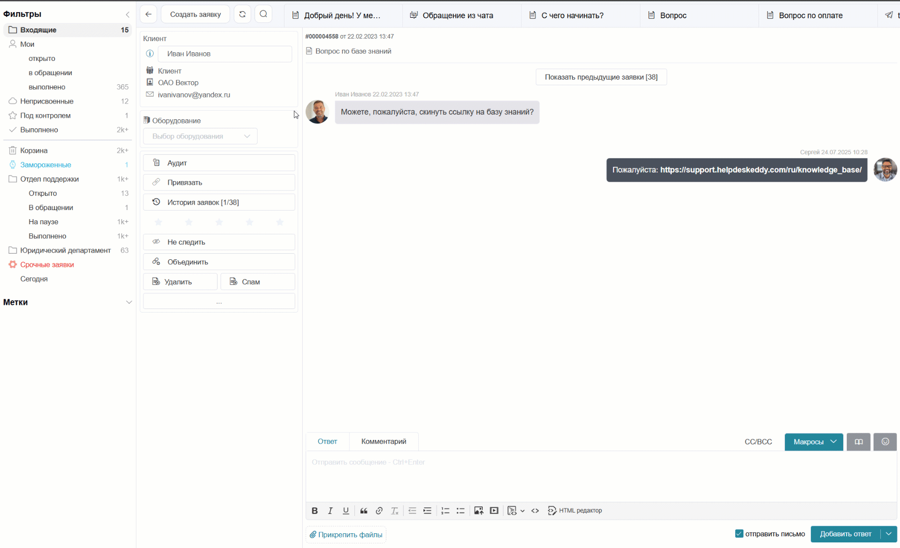 - Сворачиваемый левый блок с фильтрами. Теперь вы сами решаете, сколько места оставить списку заявок или переписке с клиентом: